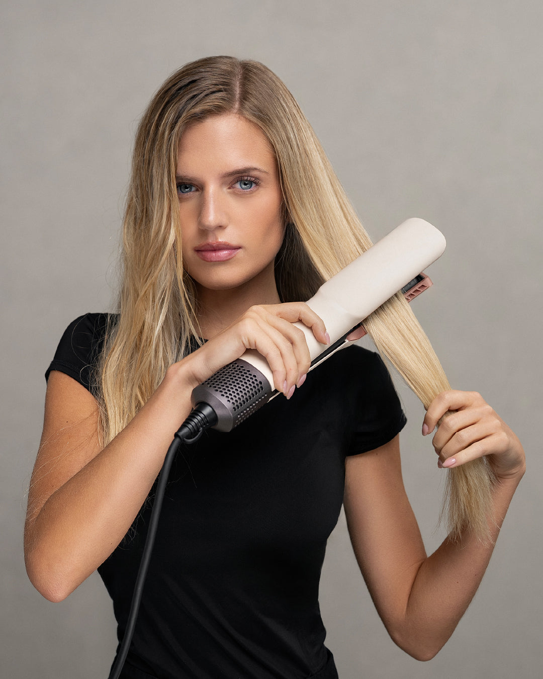 La Alisadora Airflow combina secado y alisado en un solo paso gracias a su avanzada tecnología de flujo de aire. Diseñada para cuidar tu cabello, elimina la necesidad de calor extremo, reduciendo el daño y dejando un acabado suave, brillante y natural. Ideal para todo tipo de cabello, ofrece resultados rápidos y profesionales desde la comodidad de tu hogar.