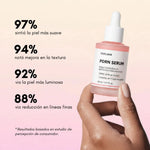 Unifica el tono y mejora visiblemente la textura de la piel, dejándola más uniforme y luminosa.